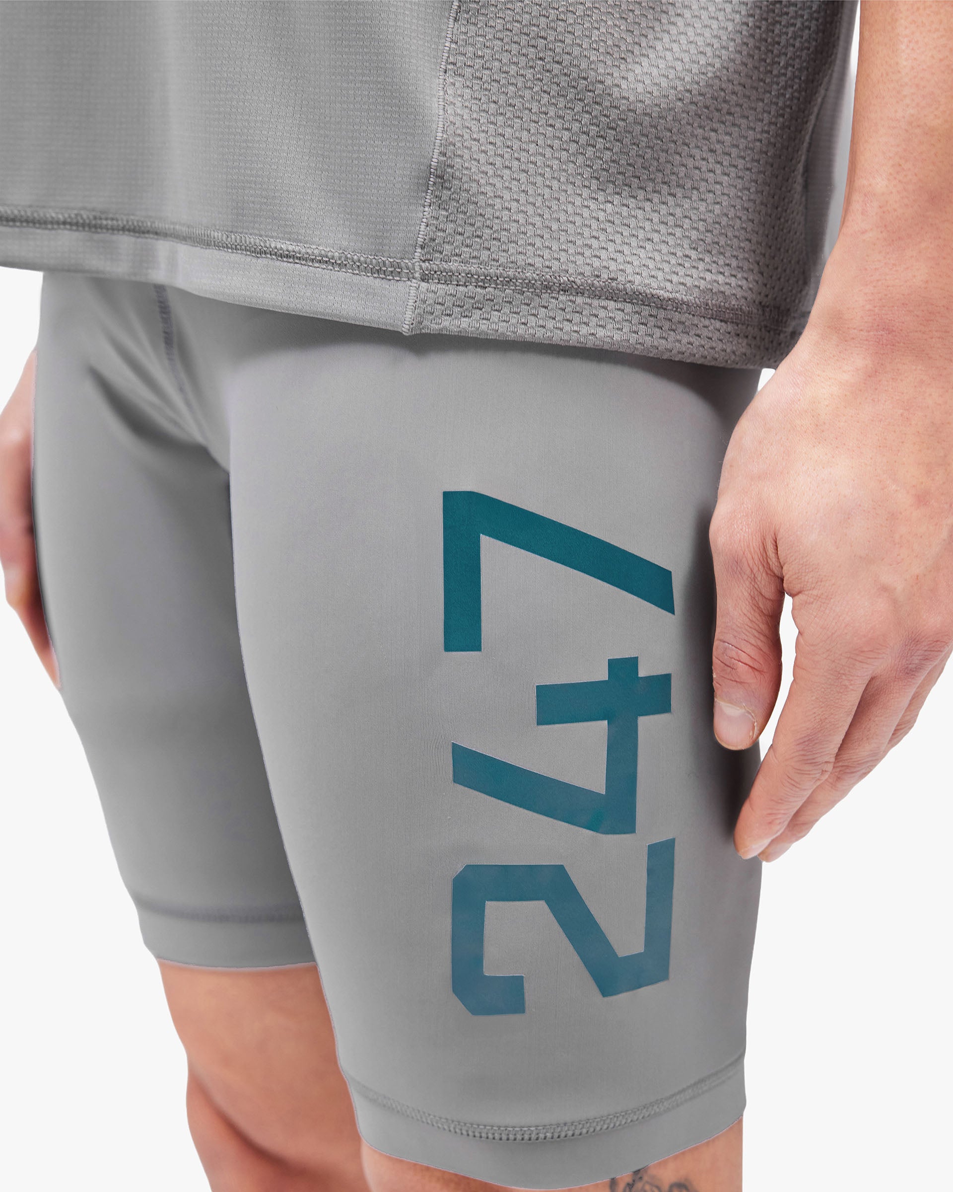 Introducing the 247 Numbers Cargo Half Tight in Graphite Grey. Engineered for hybrid training, built for athletes who train without compromise. Cut from a quick dry fabric with flatlock seams throughout for reduced chafing at peak output. Finished with a branded 247 elasticated waistband with drawcord, a mesh side pocket with lobster clip for secure key storage, silicone grippers to the hem to keep them locked in place during training, a back waistband pocket with branded zip closure and an internal pant liner. 247 lock-up to the side leg and back hem. 8-inch inseam.
