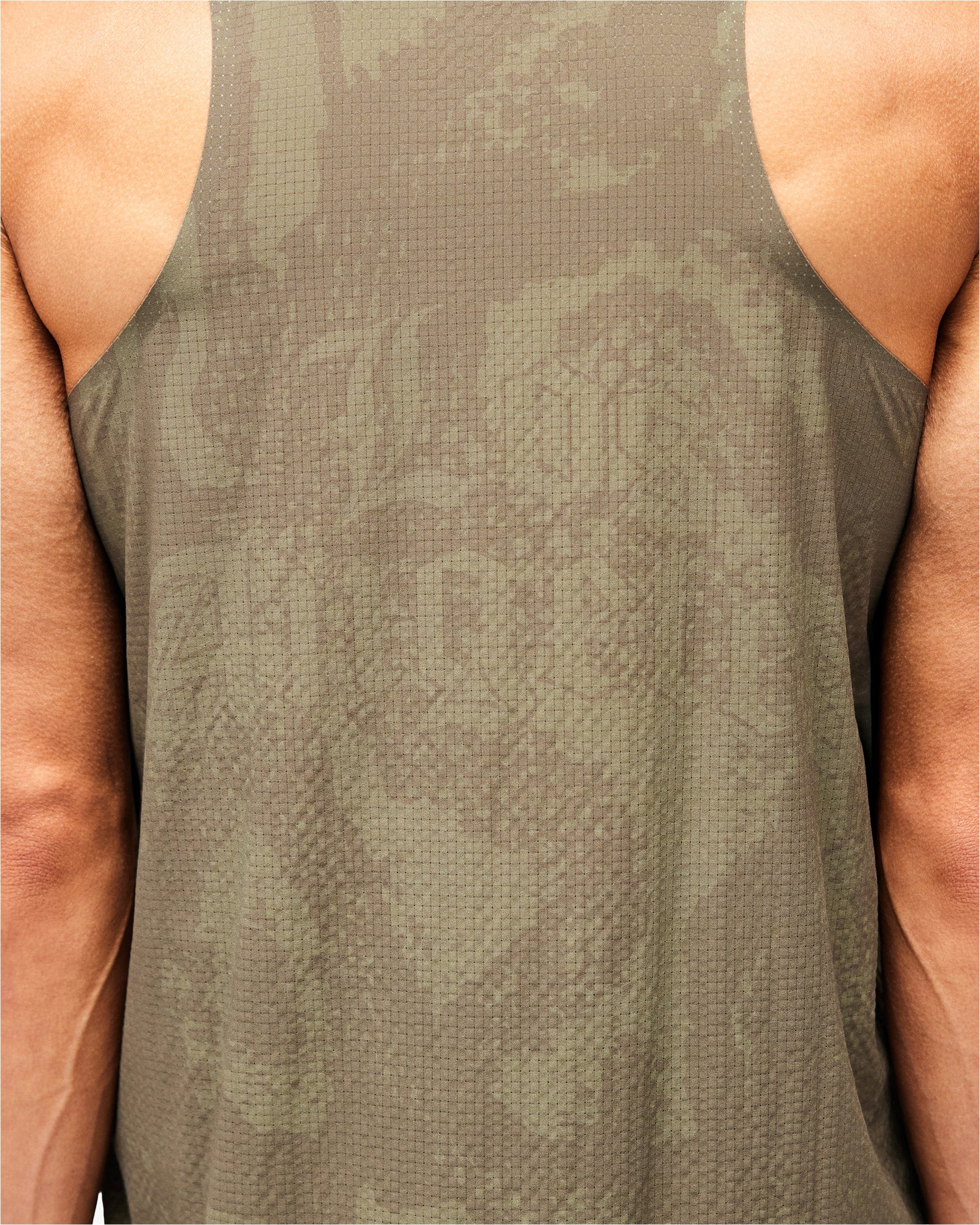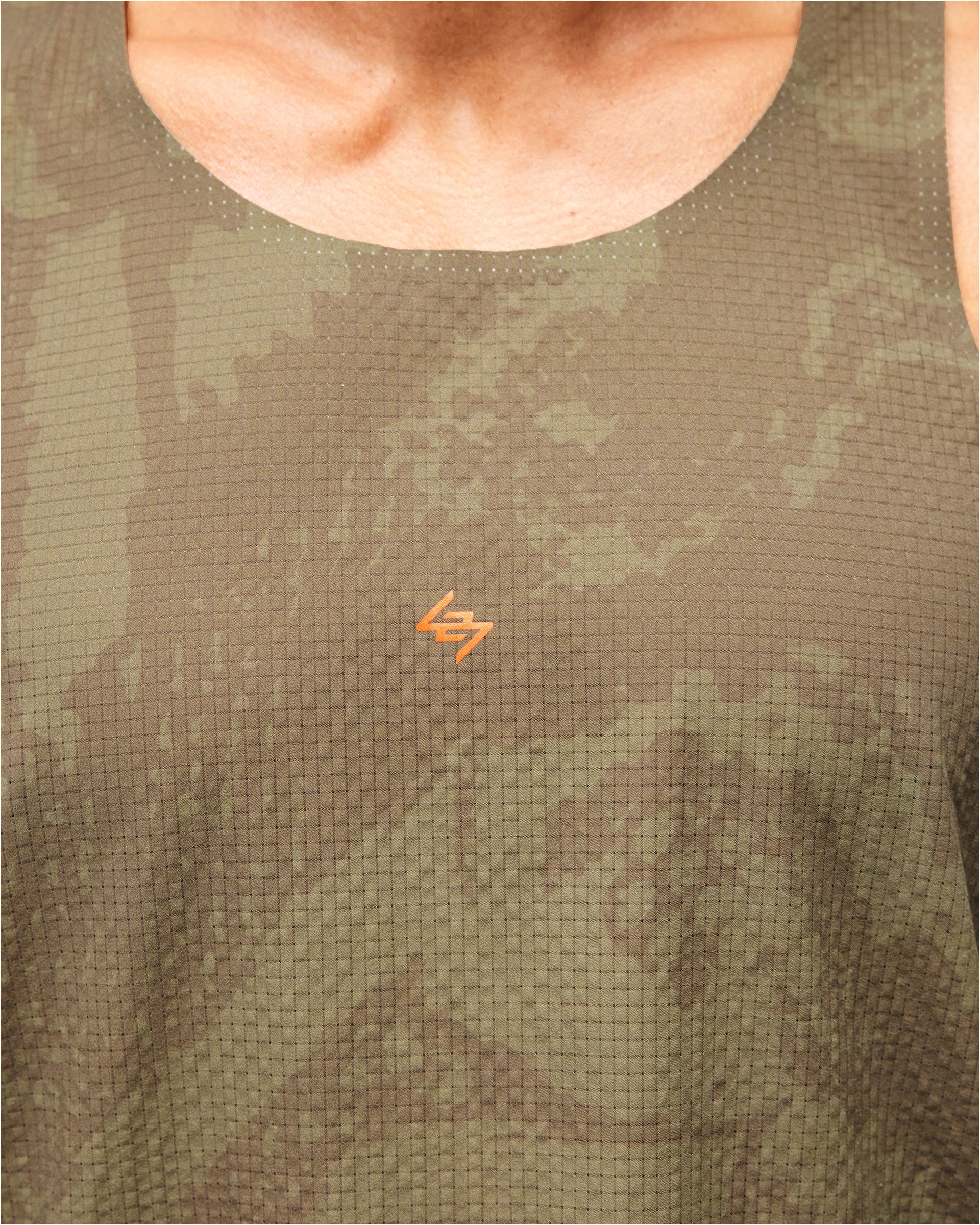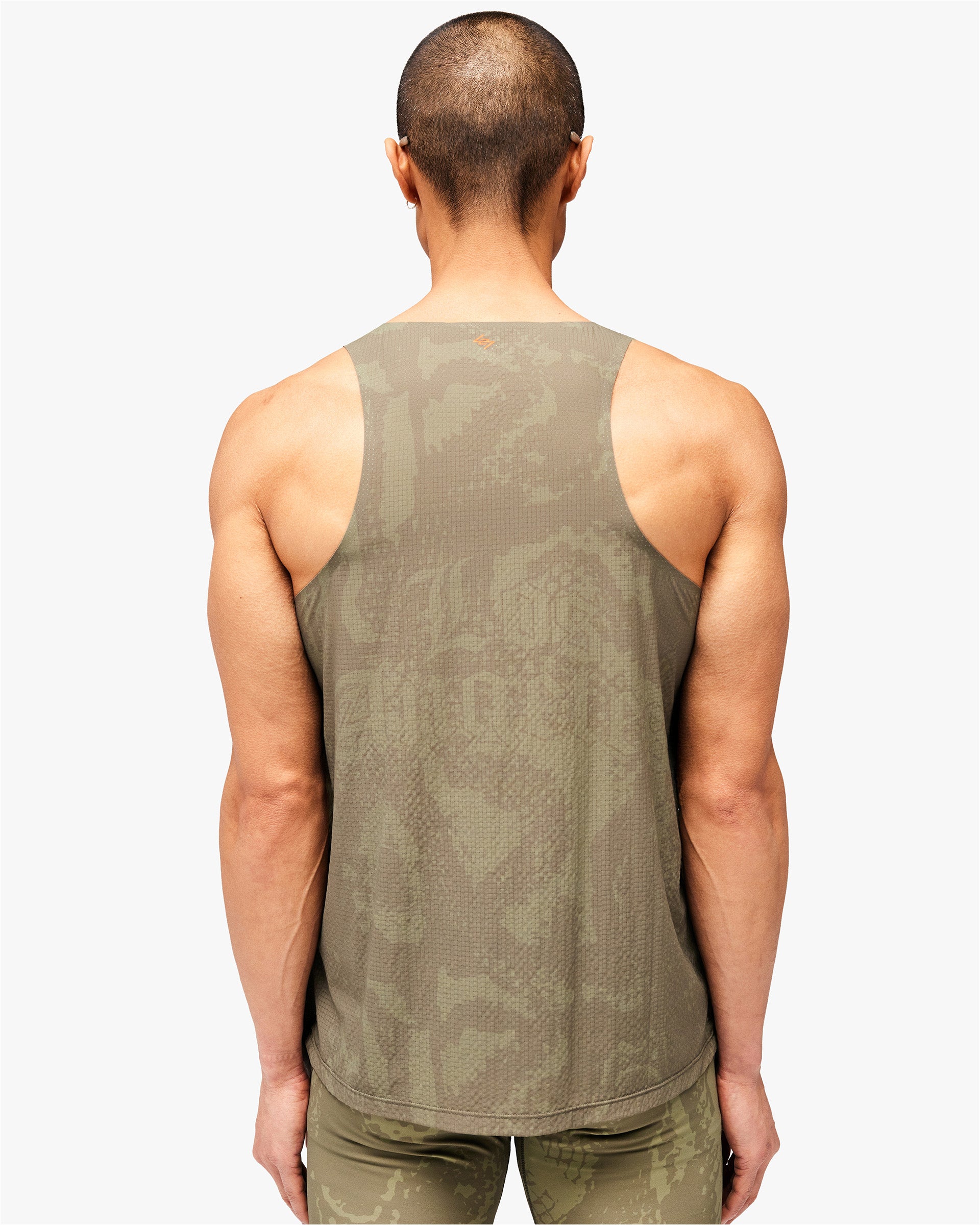 Introducing the 247 Los Angeles Singlet. Built for distance running in high temperatures, this lightweight racerback singlet is constructed from perforated mesh fabric with a tonal printed finish across the collection's signature pattern. The scooped neckline and side splits deliver unrestricted movement and maximum airflow, finished with an orange 247 logo at the chest.
