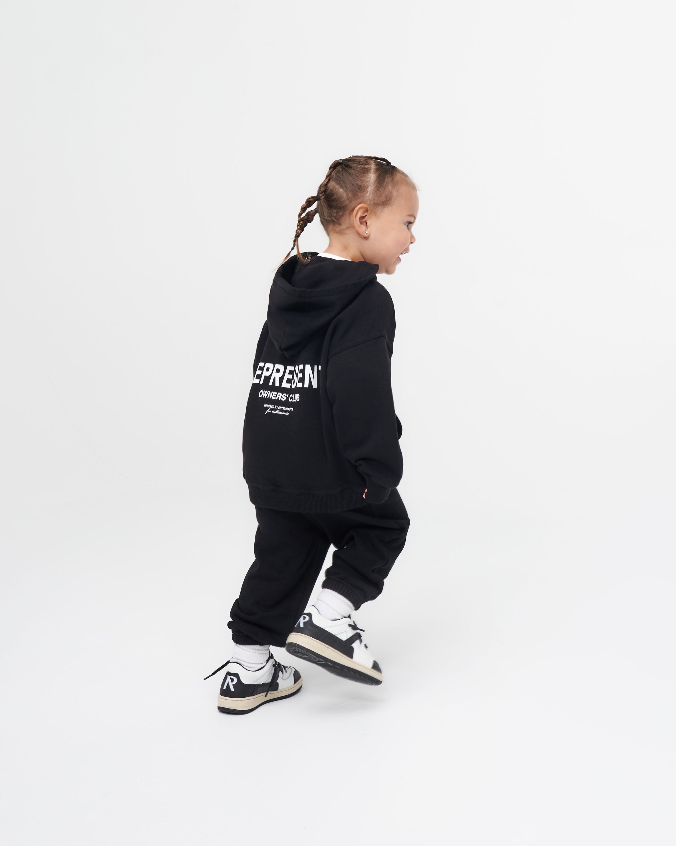 Introducing the Mini Owners’ Club Sweatpants in Black. Based on our bestselling Owners’ Club Sweatpants, these children’s joggers are crafted with a relaxed silhouette in heavy fleeceback jersey cotton. They have an elasticated waistband and elasticated cuffs, and feature our Owners’ Club logo printed to the leg.