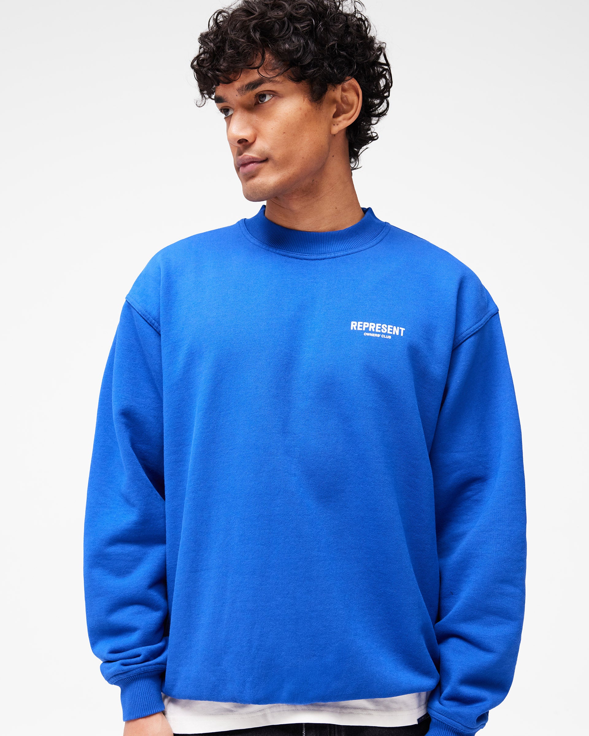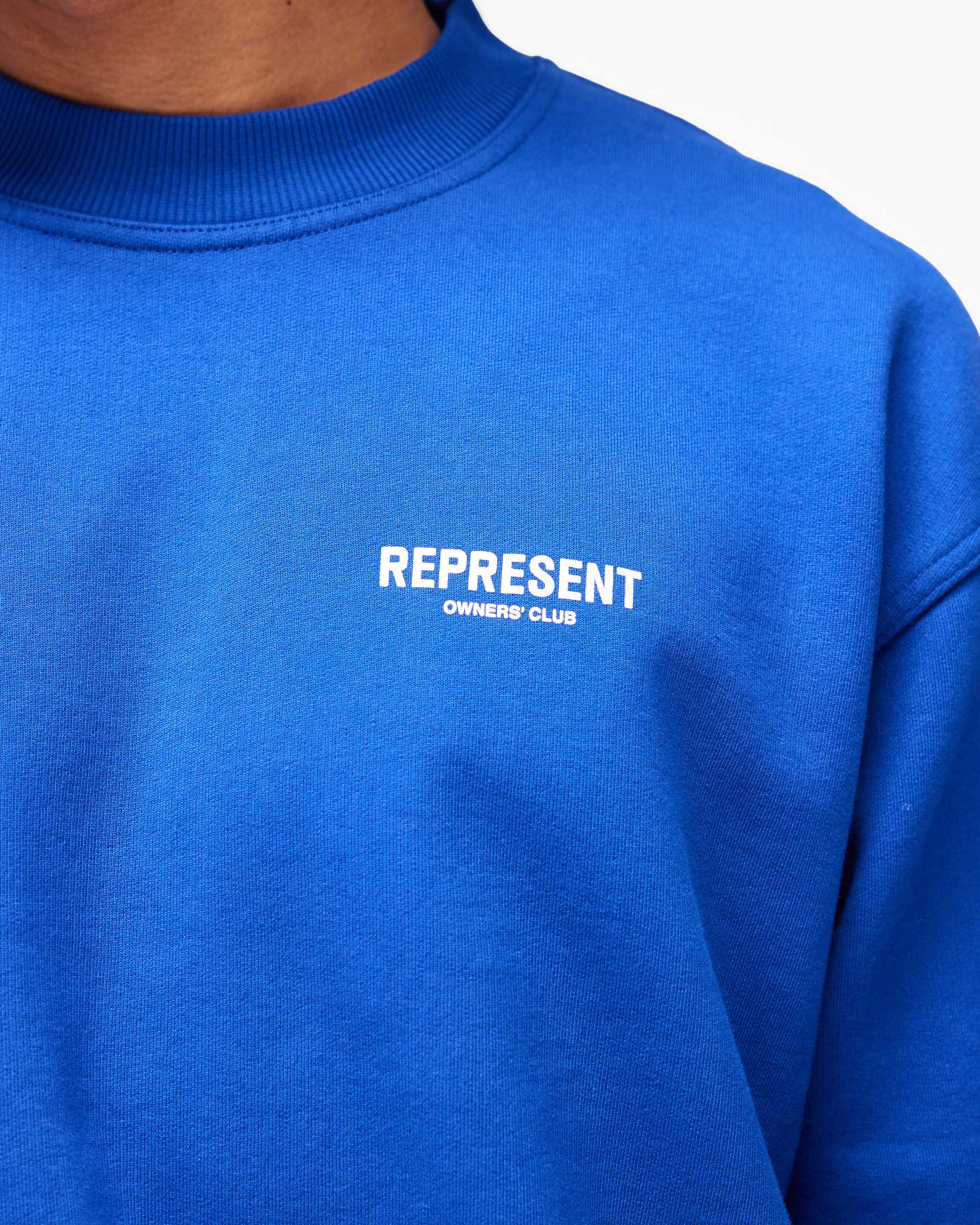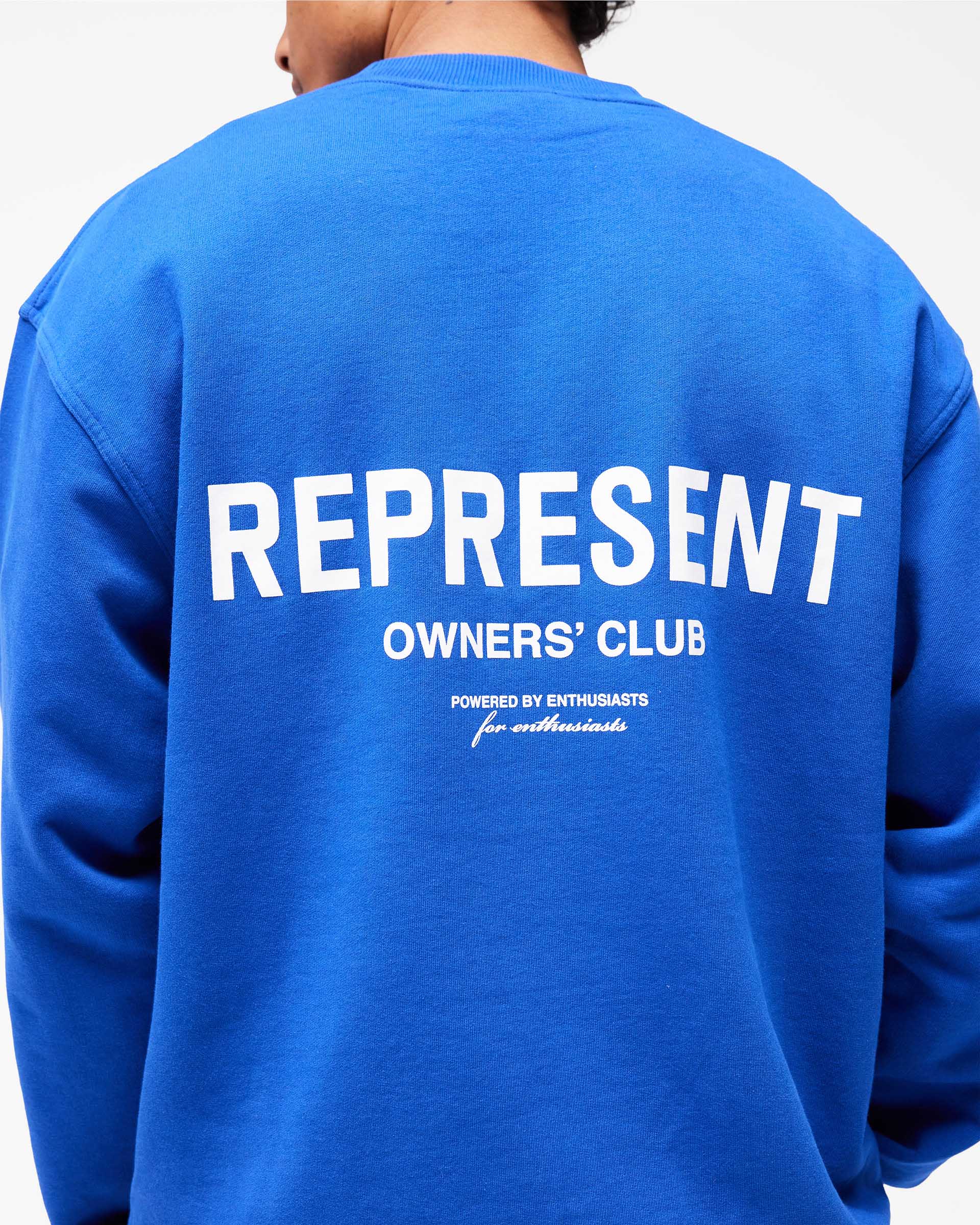 Introducing the Represent Owners Club Sweater in Cobalt. Our most recognised collection, born in Manchester and worn worldwide. Cut from 480gsm heavyweight loopback cotton, piece dyed for depth of colour and pre-shrunk for a lived-in feel from the first wear. Owners Club branding sits to the chest and back, finished with a ribbed crewneck collar, ribbed trims and our signature oversized fit that falls wide and square.